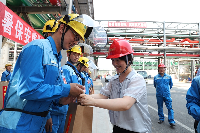7月10日,山東省石油化學(xué)工會(huì)副主席張文青一行來(lái)公司開(kāi)展“工會(huì)送清涼 防暑保安康”活動(dòng),公司黨委副書(shū)記王富興,財(cái)務(wù)總監(jiān)、總法律顧問(wèn)、首席合規(guī)官毛江強(qiáng),高級(jí)副總經(jīng)理、工會(huì)主席張雷參加活動(dòng)。
