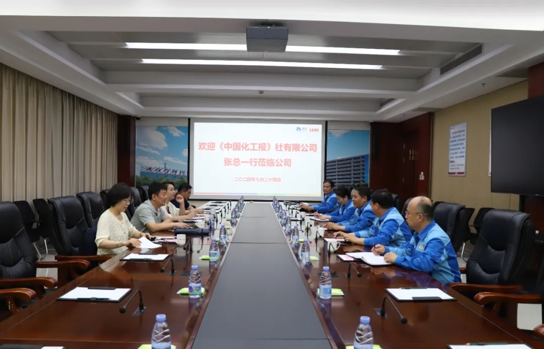 7月24日,《中國化工報(bào)》社有限公司總編輯、總經(jīng)理張健秋一行來公司調(diào)研采訪,公司總經(jīng)理、黨委副書記王延吉,副總經(jīng)理姜吉濤等參加活動。