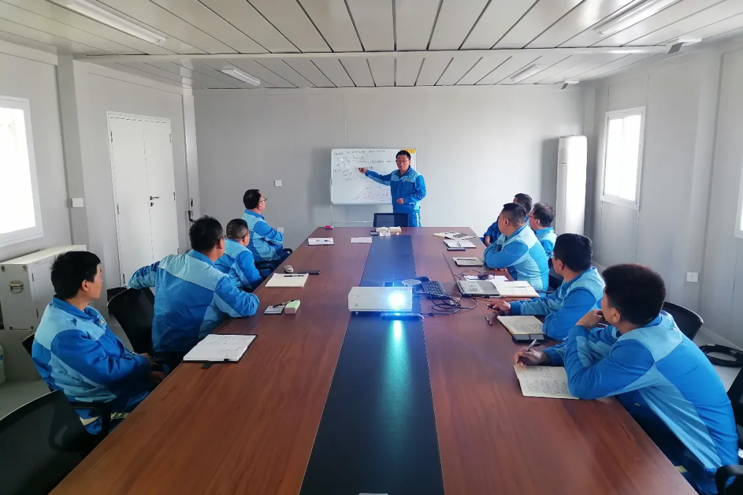 施工未展開,安全必先行。項(xiàng)目部建立常態(tài)化安全培訓(xùn)機(jī)制,在每天的安全課堂上,安全員帶領(lǐng)員工進(jìn)行“沉浸式”安全培訓(xùn),用真實(shí)事故案例制作VR模擬課件,讓施工人員在虛擬場(chǎng)景中感受違規(guī)操作的危害。培訓(xùn)后,施工人員需通過(guò)“理論+實(shí)操”的三方考核,才能上崗,確保“每個(gè)人過(guò)關(guān)才上崗”。每周結(jié)合現(xiàn)場(chǎng)工況開展定制化安全規(guī)范培訓(xùn),同步融入國(guó)際安全管理理念及發(fā)包方核心要求,動(dòng)態(tài)更新安全知識(shí)庫(kù),確保團(tuán)隊(duì)實(shí)時(shí)掌握最新行業(yè)標(biāo)準(zhǔn)與技術(shù)規(guī)范。