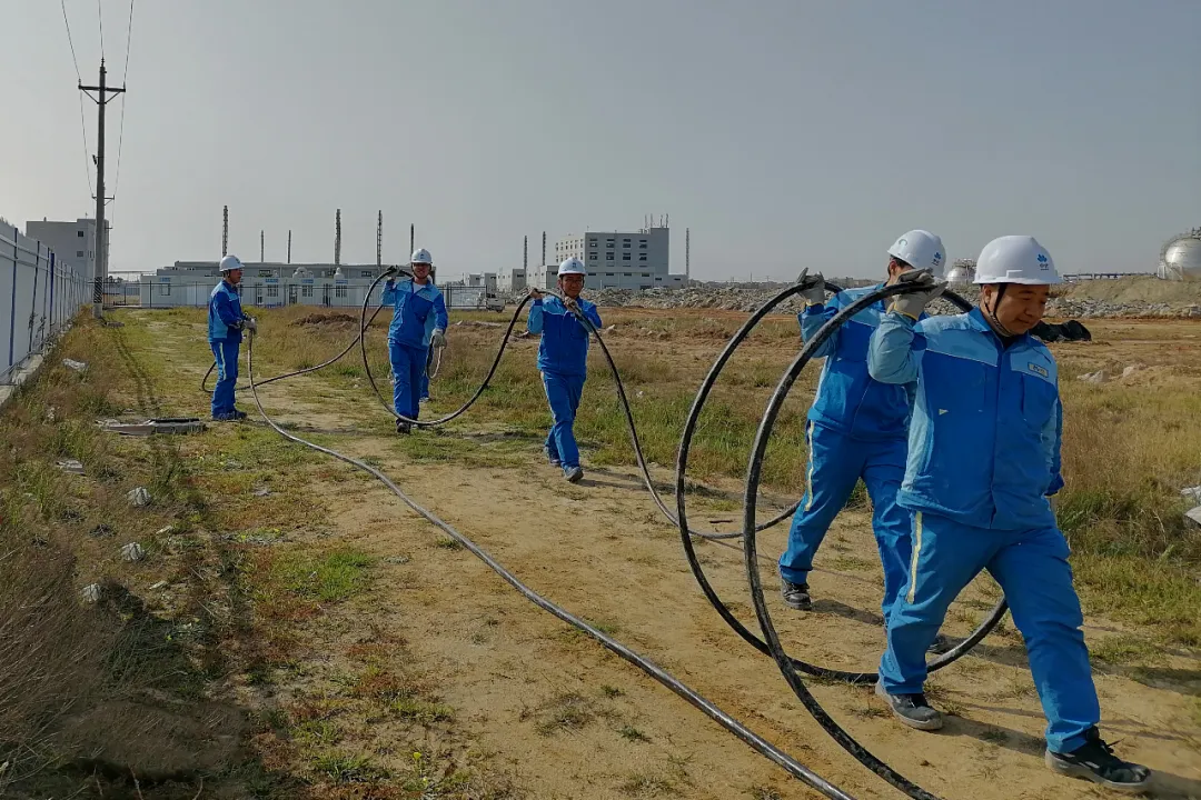 上下同欲者勝。項(xiàng)目部針對(duì)路途遠(yuǎn)、供貨慢的現(xiàn)狀,經(jīng)過(guò)價(jià)格對(duì)比協(xié)調(diào)泉州石化的電纜運(yùn)到現(xiàn)場(chǎng)。沒有施工人員,黨員干部率先垂范齊上陣,肩扛手拉起比胳膊還粗的電纜自行敷設(shè),他們?cè)陔y度最大的電纜拐彎處,一邊喊著口號(hào)一邊使勁往前拽,人人臉漲的通紅,脖子上暴起青筋,空氣中回蕩著號(hào)子聲,最終在汗水與吆喝聲中敷設(shè)好了一條保障供給的“動(dòng)力脈絡(luò)”。