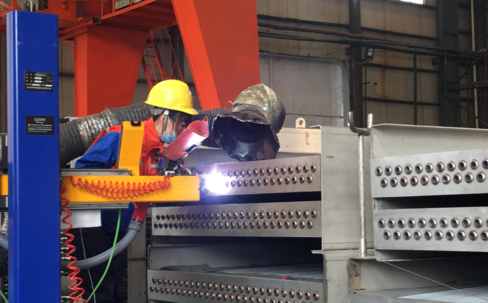 在設備制作現場,員工們正在熱火朝天的忙碌著。有的在彎制蒸發冷管束,有的在焊接蒸發冷箱體,有的在焊接蒸發冷管箱管頭……。記者現場采訪了一名焊工孟麗娟,她告訴記者:“通過實施定量定價小段包工,我原來每天焊接蒸發冷管箱230個管頭,現在焊接300個左右,工作效率明顯提高了,工資收入增長了,干勁更足了。”