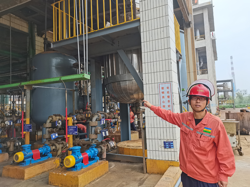 當走到不遠處的一套正在運行的塔罐機泵前,一位年輕的員工興致勃勃的說:“這是一套廢料回收系統(tǒng),它的主要作用是把系統(tǒng)內(nèi)無法處置的廢料集中重新過濾吸收,進行循環(huán)再利用。其中除了部分螺絲螺栓外,所有的設(shè)備、管線都是利用集團其他裝置上一些閑置或者淘汰的廢舊設(shè)備、管線進行改造的,完全由我們自主設(shè)計、自主施工、自主調(diào)試投運,現(xiàn)在已經(jīng)投入使用兩個月了,從前沒法處置的廢料現(xiàn)在經(jīng)這套系統(tǒng)回收處理后全部達到循環(huán)再利用,運行效益不計,僅技改成本,就節(jié)省了近100萬元!”