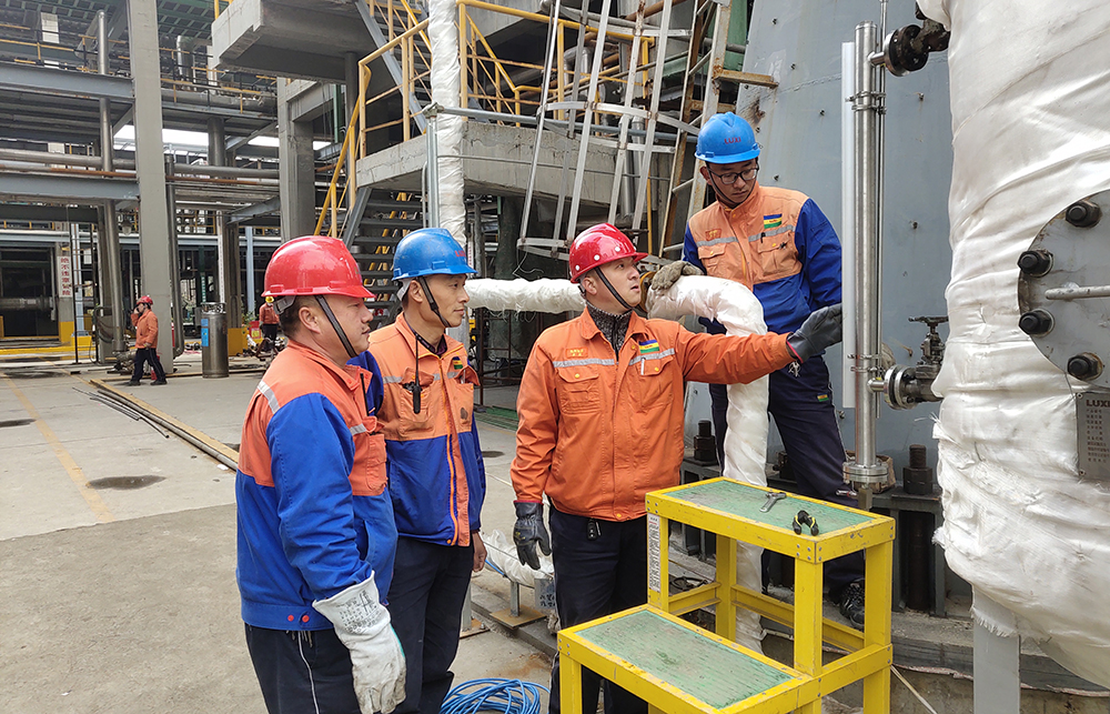 記者發(fā)現(xiàn),此次鋪放電纜的管廊西側(cè)屬于硫酸罐區(qū),電儀安裝隊(duì)隊(duì)長(zhǎng)卓華斌來(lái)到作業(yè)現(xiàn)場(chǎng),第一件事就是進(jìn)行危險(xiǎn)源辨識(shí),在對(duì)員工檢查各自安全防護(hù)用品時(shí),他走到罐區(qū)前設(shè)置的各個(gè)危險(xiǎn)化學(xué)品安全告知牌前,仔細(xì)閱讀告知內(nèi)容。“作為管理人員,我必須第一時(shí)間了解掌握作業(yè)區(qū)域有毒、有害介質(zhì)理化特性,才能及時(shí)將安全防護(hù)注意事項(xiàng)傳達(dá)給員工?!痹陔S后現(xiàn)場(chǎng)集合時(shí),卓隊(duì)長(zhǎng)將相應(yīng)的安全防護(hù)及逃生措施講解給大家,并再三叮囑登高作業(yè)人員配備好相應(yīng)的濾毒罐,檢查防毒面具無(wú)破損后再登高。